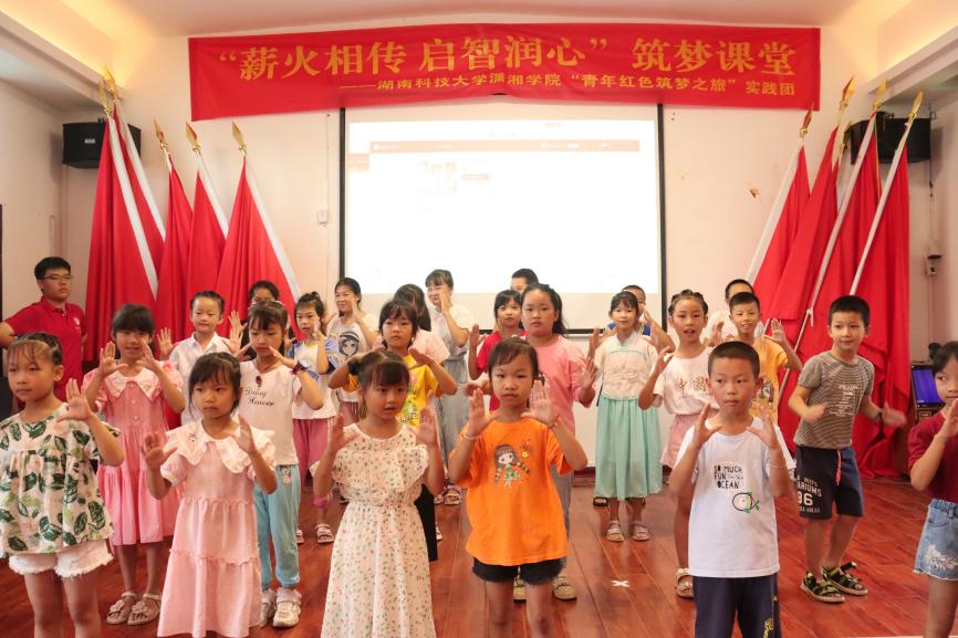 小暑清和夏日长,汇演笑语颂风华。走近湖南省怀化市通道侗族自治县万佛山镇木脚村,外面雨声如织却掩盖不住教室里此起彼伏的欢呼声和掌声。建团百年之际,为丰富当地人民精神文化生活,助力乡村文化振兴,7月19日上午,beat365英国官网网站“青年红色筑梦之旅”实践团组织开展了“筑梦课堂”文艺汇演暨教学成果作品展。本次活动邀请了省人防办人事处副处长驻木脚村工作队长何绍芳,省人防办指挥通信处副处长驻木脚村工作队员申利华,木脚村党总支书记吴菊凤,木脚村党总支副书记杨进松等出席,湘潭大学和湖南中医药大学大学生社会实践团代表、beat365英国官网网站实践团全体成员与当地村民参加活动。