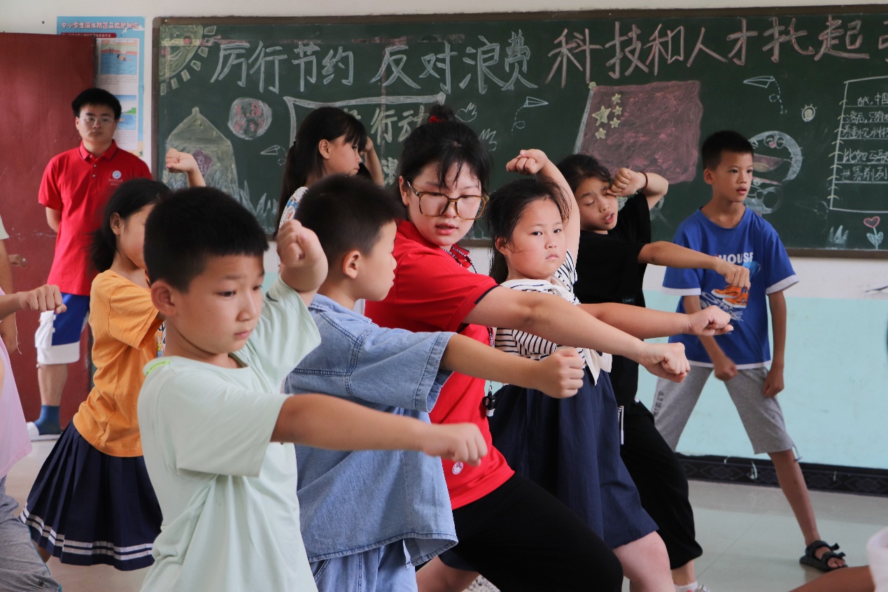 清风徐来,天朗气清。为进一步推进“五育融合”实施,让每个学生感悟运动的快乐,体验生命的活力,张扬生命的精彩,7月9日下午,beat365官网暑期“三下乡”实践团队于万佛山镇木脚村完全小学开展武术课、障碍赛等“强身健体”系列课程。